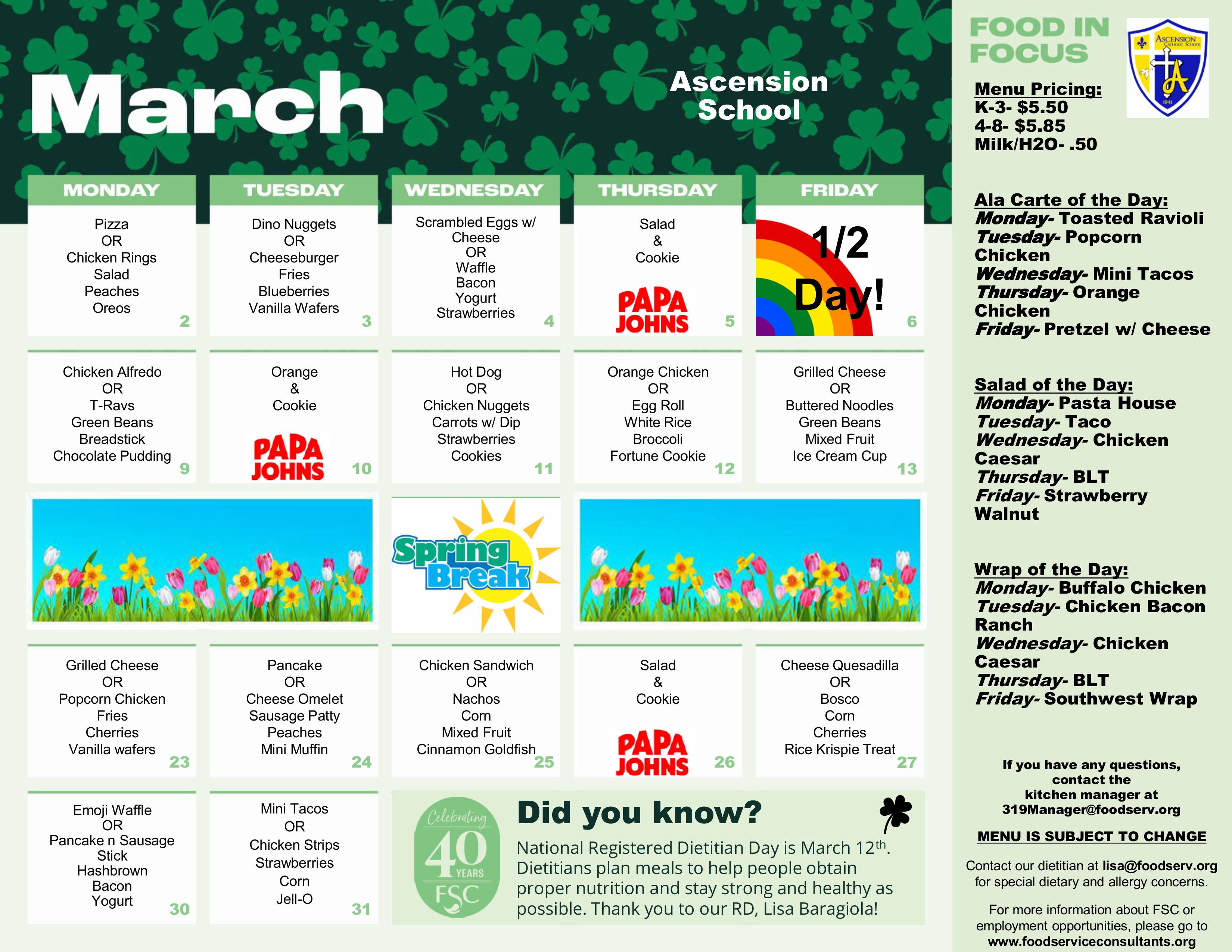 Current Month's Menu